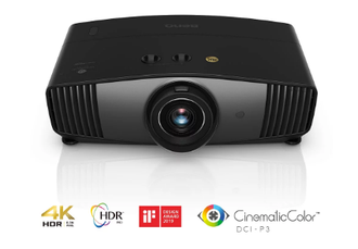 Разрешение 4K UHD (3840x2160), ламповый источник света со сроком службы 4000 часов, яркость 1800 ANSI люмен c 100% охватом цветового пространства DCI-P3/Rec.709 (заводская калибровка), технология HDR-PRO (HDR10 и HLG) с увеличенной поддержкой яркости, контрастность 100000:1, воспроизводит 1,07 миллиарда цветов. Проекционное расстояние 1.36-2.18:1. Мощность потребления 330W – значит подходит для больших экранов. Технология формирования изображения DLP (возможен эффект радуги). Размер ШВГ 492 x 168 x 349 мм, вес 6,5 кг.