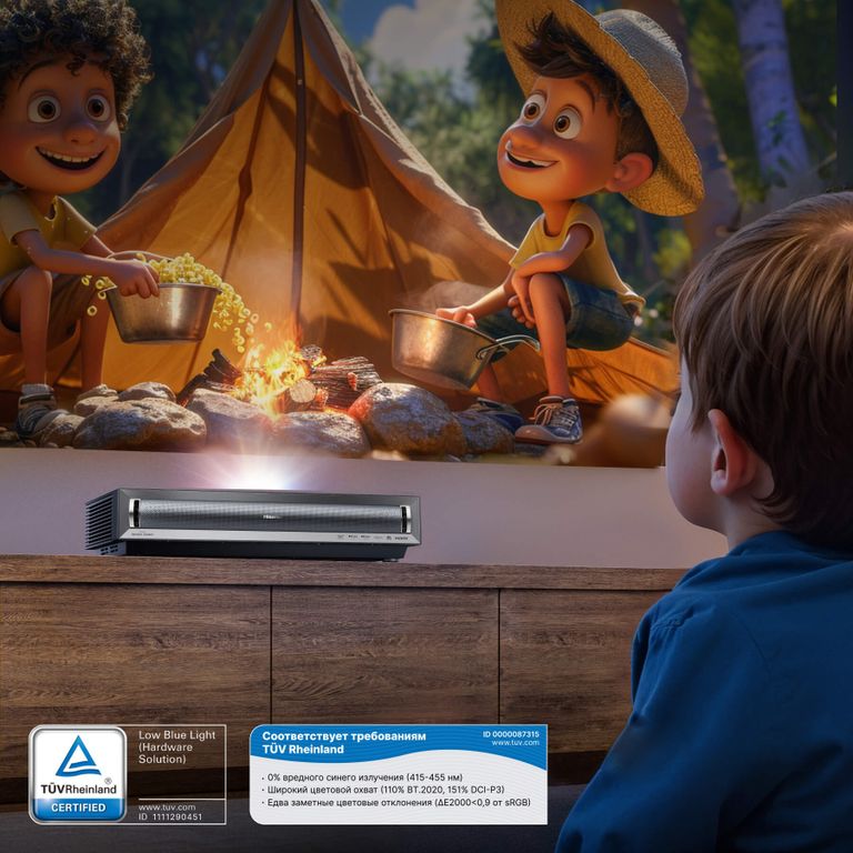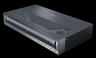 Улитракороткофокусный проектор. Разрешение 4K UHD 3840x2160, яркость 3000 люменов, трехцветный лазер срок службы 25000 часов, динамическая контрастность 2000000:1, цветовой охват BT.2020 110%, поддержка Dolby Vision, HDR10+, HDR10, HLG, проекционный коэффициент 0,22:1. Технология DLP 0.47" DMD, звук Harman Kardon, Dolby Atmos 15 Вт x 2 + 10 Вт x 2 высоких частот. Потребление электроэнергии 300 Вт, подходит для больших экранов до 150 дюймов. Размеры ВШГ 298 x 663 x 403 мм, вес 9 кг.