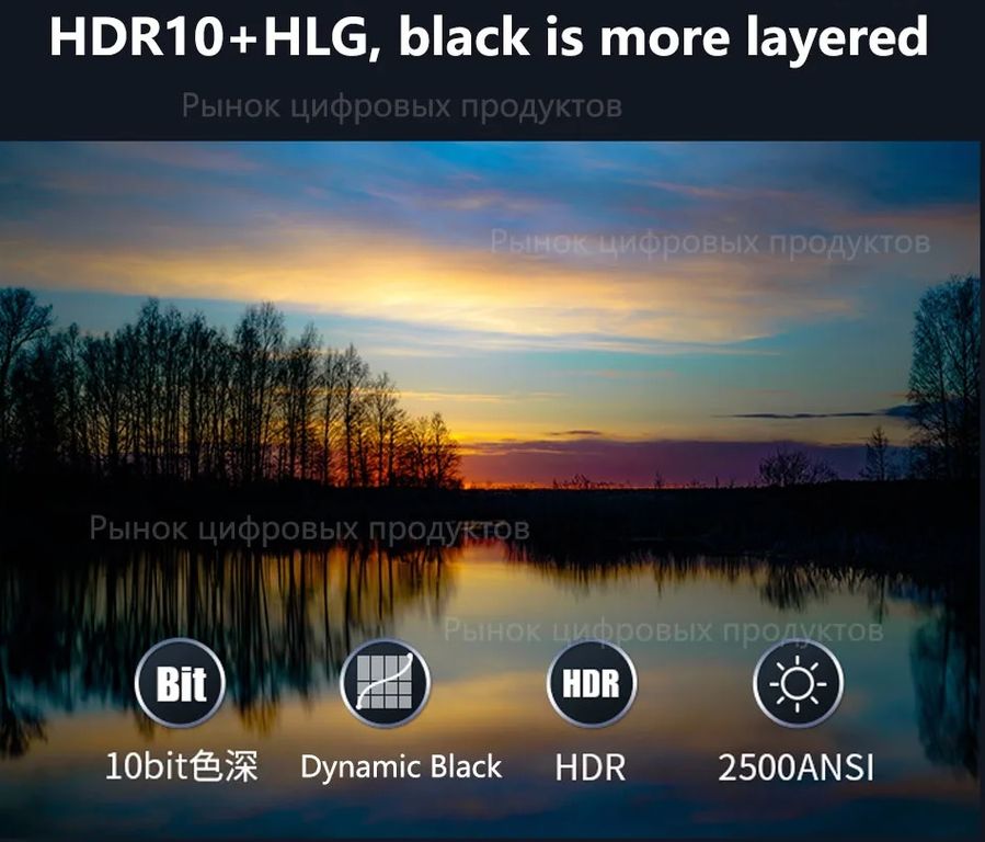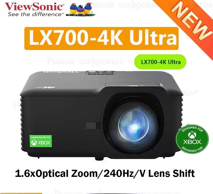 Трёхцветный лазерный 4K-проектор, разрешение: 3840x2160, якость 2500 люмен, русский язык меню. Оптический зум 1,4-2,24:1, сдвиг по вертикали 15%. Черный цвет. Воспроизводит 110% политры BT2020. Большой размер матрицы 0,65 DMD. Стеклянная линза. Поддержка стандарта HDR10+. Обратная связь по HDMI: CEC и eARC. Триггер 12В. Размер 286x216x129 мм.